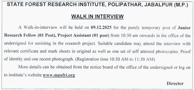 Walk-In-Interview of Research Project on 09 December 2025 | download pdf