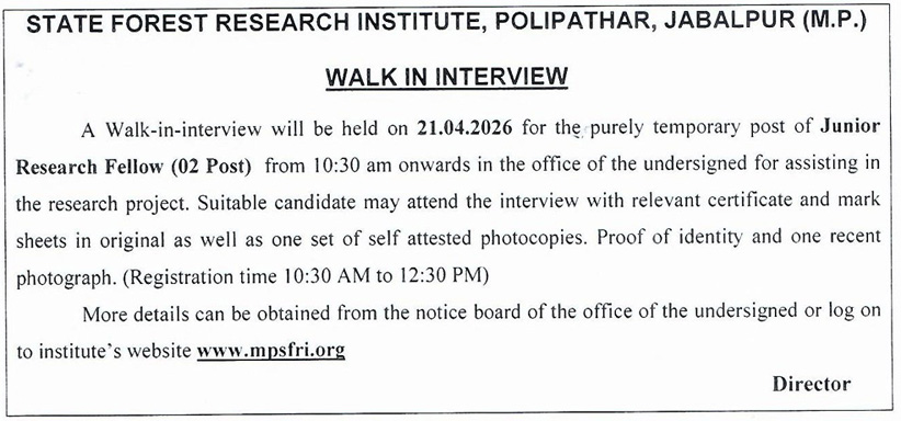 Walk-In-Interview of Research Project on 21 April 2026 | Download pdf