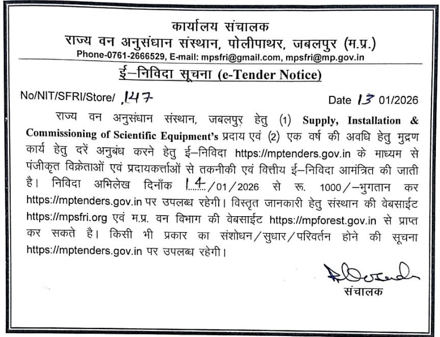 ई-निविदा सूचना 1. Supply, Installation & Commissioning of Scientific Equipments 2. मुद्रण कार्य हेतु दरें अनुबंध करने बावत् [new]